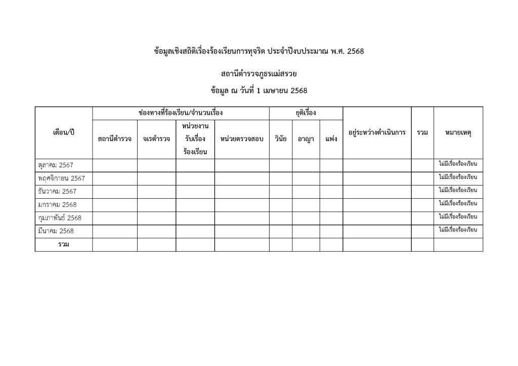 ตาราง_ข้อมูลเชิงสถิติเรื่องร้องเรียนการทุจริต ไฟล์ WORD