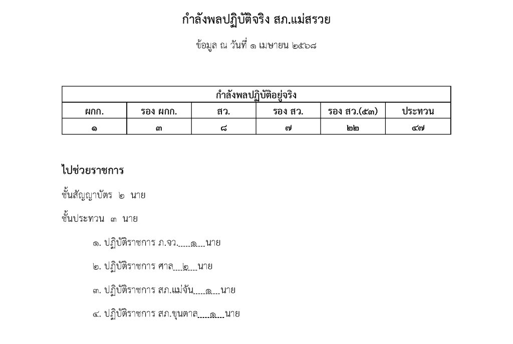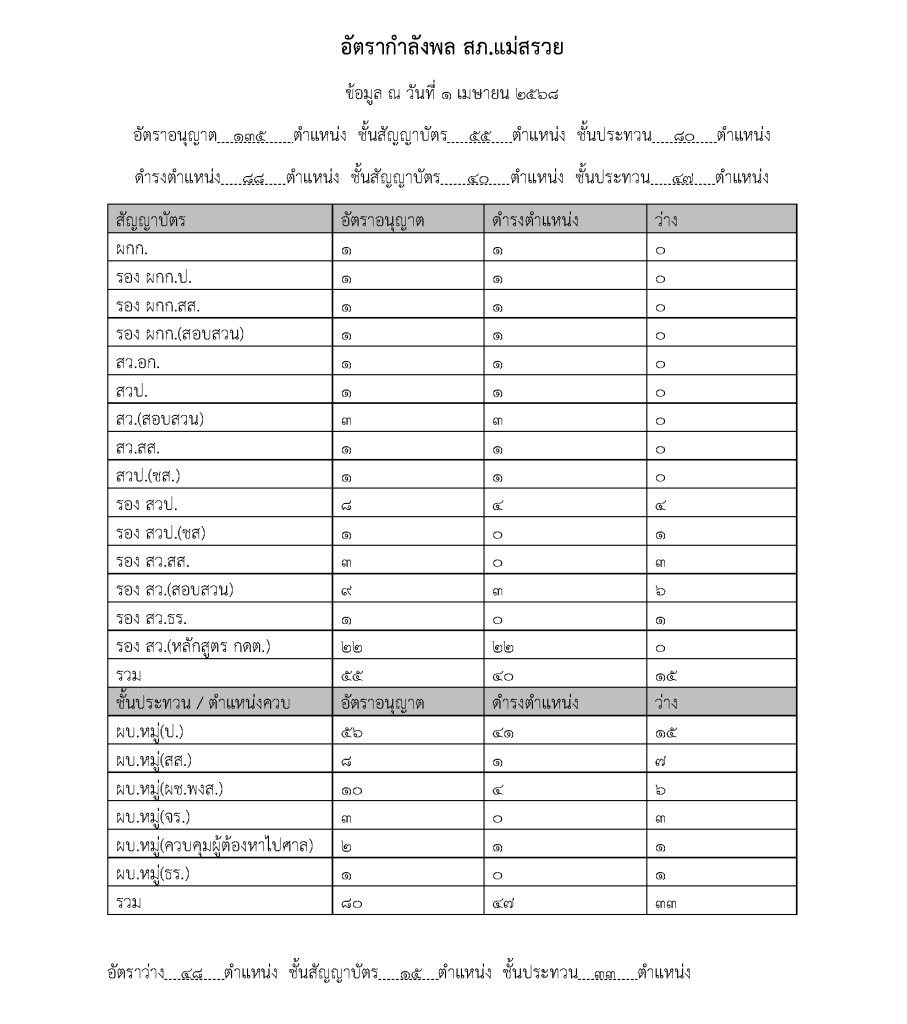ข้อมูล ณ วันที่ 1 เมษายน 2568